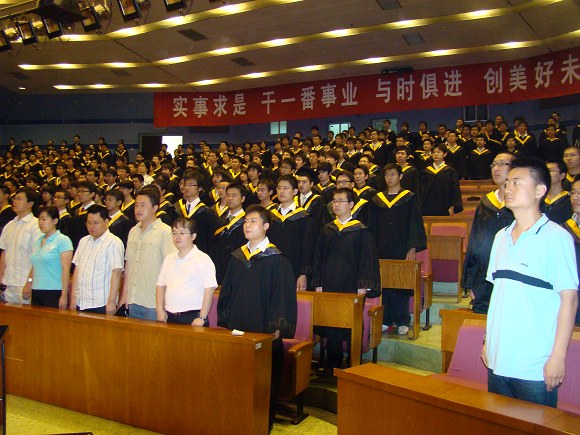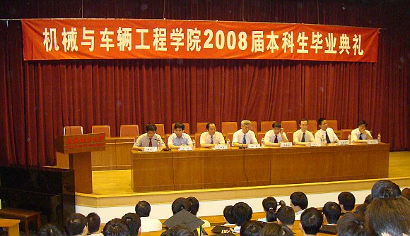 6月23日上午,机械与车辆工程学院2008届本科生毕业典礼在学校中教报告厅隆重举行。机械与车辆工程学院全体院领导以及教师代表林程教授、部分学生家长、2008届全体本科毕业生出席了毕业典礼。