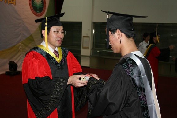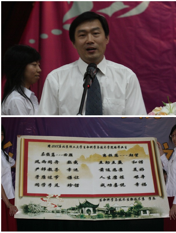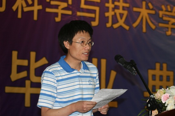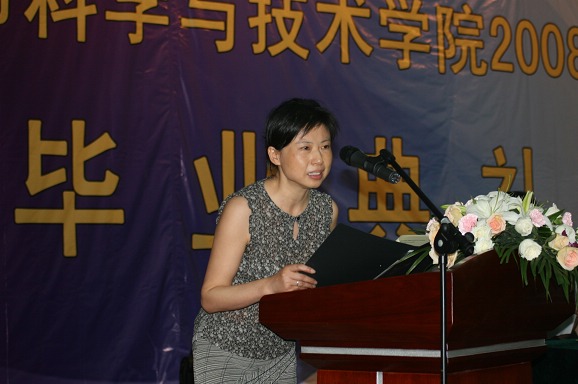 生命学院邓玉林教授代表学院致词,首先,邓院长向2008届全体毕业生表示了衷心地祝贺,同时邓院长强调说:生命学院的发展离不开每一位同学的努力,生命学院伴随着每一名同学的成长而蒸蒸日上,作为院长他为同学们感到骄傲和自豪。之后,邓院长还对毕业生提出了殷切的希望,邓院长意味深长、饱含期许的致辞激起了毕业生强烈的共鸣,会场里响起了经久不息的掌声。
