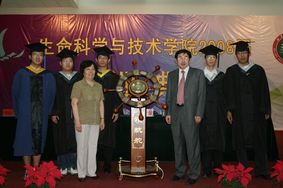 6月23日下午,生命科学与技术学院2008年毕业典礼在新食堂四层多功能厅隆重举行,仪式由生命学院党委副书记副院长周连景老师主持,生命学院党委书记李兰东,院长邓玉林,副院长罗爱芹、副院长唐晓英、院长助理生物医学工程系主任李勤以及学院各系、所、中心教师代表,学生家长代表出席了本次仪式。