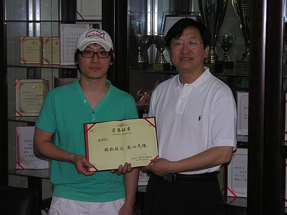 管理与经济学院08410401班韩国留学生崔钟氾同学,自2004年在我校学习以来,刻苦努力,认真钻研,克服了语言上的障碍,通过了大学本科课程学习,顺利毕业。由于他的突出表现,2008年4月,获得“北京市外国留学生奖学金”一万元。该生心系我国地震灾情,关心在校地震灾区及贫困学生,毕业之际,愿意将奖学金捐出。