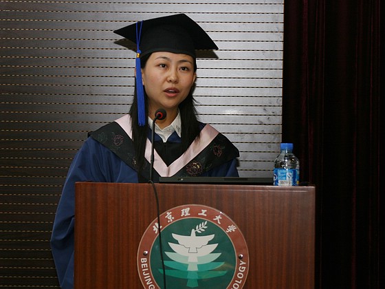 2008届毕业生孙远芳同学代表全体毕业生发言。她回忆了在学院学习生活中难以忘怀的点点滴滴,表达了对培养了自己多年的学院依依惜别之情,同时她代表在座的每一位毕业生表示,在离开学校步入工作岗位后,将继续发扬学校的延安精神,不断地学习提高自己,励精图治回报学院、回报学校、回报社会。