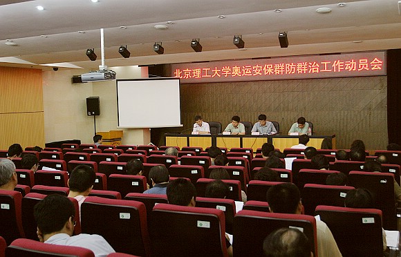 北京奥运会、残奥会开幕在即,为保证我校承担的奥运会、残奥会任务顺利完成,营造平安和谐的校园环境,学校于7月4日上午召开了“奥运安保群防群治工作动员会”,校领导郭大成、侯光明、赵平、赵显利,各综合治理责任单位负责人参加了会议。
