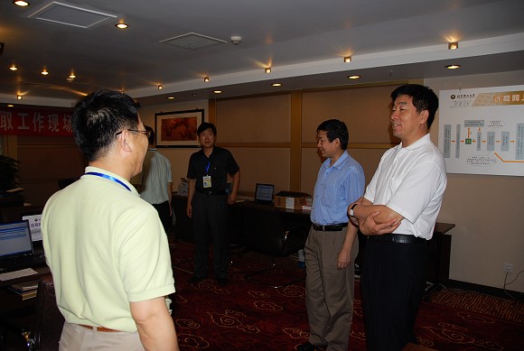 7月9日下午4;30,党委书记郭大成在纪委书记杨蜀康的陪同下,百忙之中来到招生录取现场,看望、慰问招生工作人员并了解招生工作进展情况。郭书记认真察看了现场的工作环境,详细询问了目前已投档和已录取的各省市生源情况,并饶有兴致地与工作人员一起审阅考生资料。