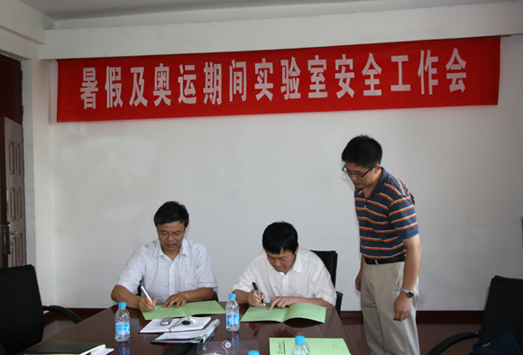 然后,赵平副书记代表学校与各学院主管实验室安全的副院长签订了《暑假及奥运期间实验室安全责任书》。
