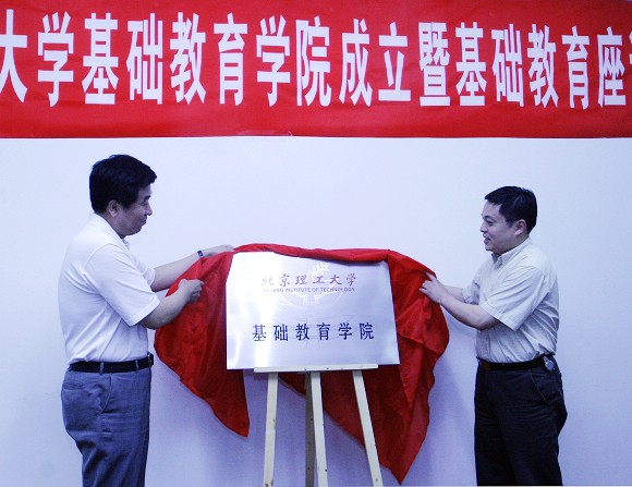 郭大成书记和胡海岩校长共同为基础教育学院揭牌。 随后参会人员就基础教育学院的建设和发展进行了座谈。