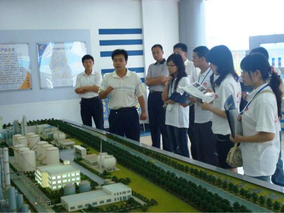 在参观了华盛中天集团后,科考队随后来到了新型能源研究与开发的久泰能源集团进行了参观学习。久泰能源集团位于临沂市高新技术产业开发区罗庄工业园,是一家以环保清洁能源研究和生产为主要业务的集团公司,主导产品为二甲醚和甲醇,现已达到15万吨二甲醚、25万吨甲醇的生产能力,是目前世界上规模最大的新型清洁能源二甲醚生产企业,现在已具备了可实现大规模生产环保型车用和民用清洁燃料的能力,有很强的市场竞争优势,生产工艺技术达国际领先水平。公司战略目标规划的顺利完成,将会进一步巩固在新型清洁能源领域的领先地位。