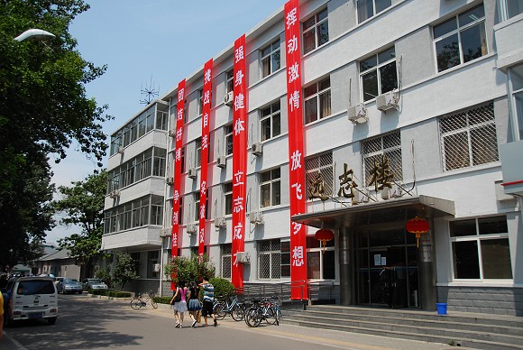 悬挂了诸多体育口号的远志楼。