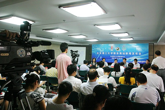 我校服务科技奥运项目共有14项。在记者提问环节,有关这些科技项目的研制和进展情况吸引了新闻媒体记者,各媒体提问活跃。开闭幕式烟火、三维仿真技术、奥运电动客车等项目由于科技含量高、创新度高等特点而受到了各新闻媒体的广泛关注。针对记者的提问,各项目负责人解疑释惑,耐心细致地进行了有关回答。