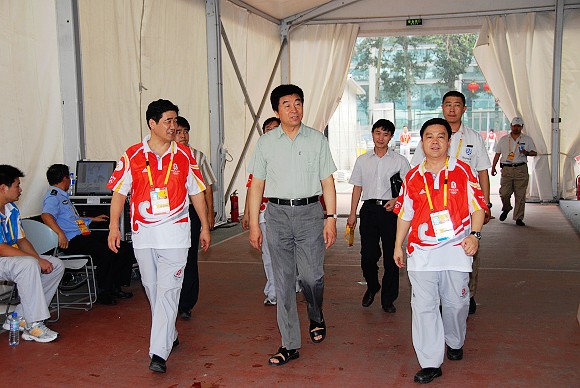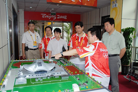 ob真人体育馆场馆主任杨宾同志向郭大成书记详细介绍了场馆各个功能区的建设和筹备情况。郭书记仔细查看了场馆的交通运输指挥系统,安全保卫系统,运动员、技术官员、新闻媒体、贵宾、观众、工作人员等奥林匹克大家庭成员的工作和休息场所,以及奥运会排球馆和残奥会盲人门球馆。