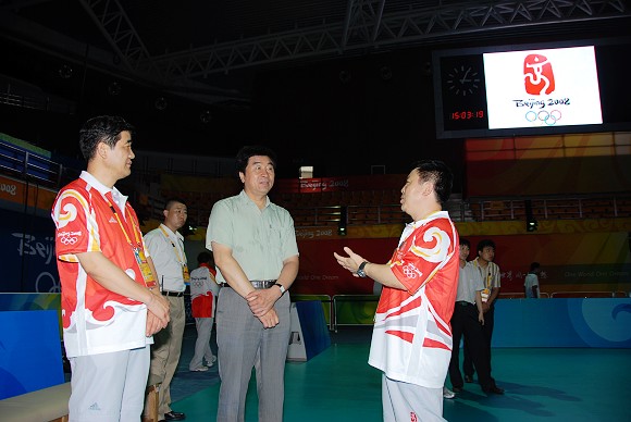 7月28日下午,在奥运会即将到来之际,ob真人党委书记郭大成在场馆主任、校党委副书记、副校长杨宾,副校长赵显利,学校办公室主任姚利民等陪同下来到我校体育馆检查了奥运赛事备战情况。