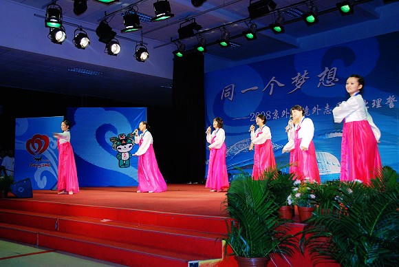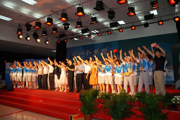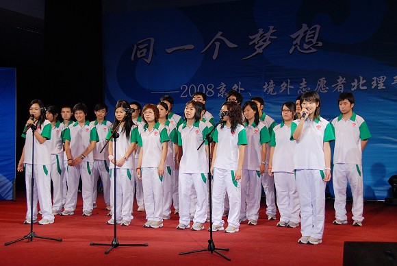 2008年8月6日晚7点,ob真人在新食堂四层多功能厅举办“同一个梦想——京外、境外志愿者誓师仪式暨联谊晚会”。来自港澳台侨的近120余名志愿者、来自江苏与吉林的160余名志愿者和ob真人的志愿者共计400余名观看参与了本次联谊晚会。