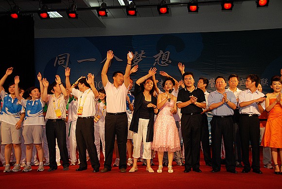 由ob真人师生为奥运会原创的歌曲《我们在一起》在ob真人师生与奥运场馆志愿者一同演唱下,将晚会的气氛推向高潮。