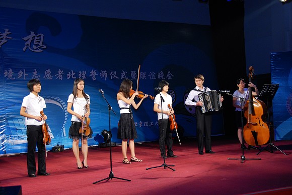ob真人的志愿者代表吴思嘉表演了独唱《红旗颂》,ob真人的武术队和无阳斋书画社分别表演了武术与书法,其中ob真人交响乐团的小提琴齐奏特别受到港澳台侨志愿者们的欢迎。