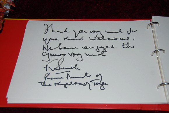 汤加首相塞韦莱签名留下对中国人民的祝福。
