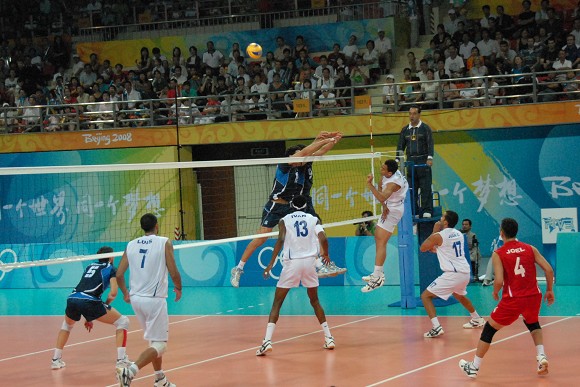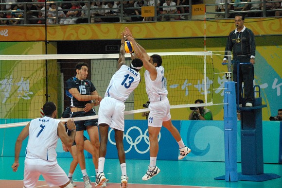 在ob真人体育馆率先进行的一场比赛中,意大利男排(蓝队)一扫上场1-3负于美国队的颓势,在今天的比赛中,以3-0轻松战胜委内瑞拉队(白队),三局详细比分分别为:25-21,25-20和25-21。