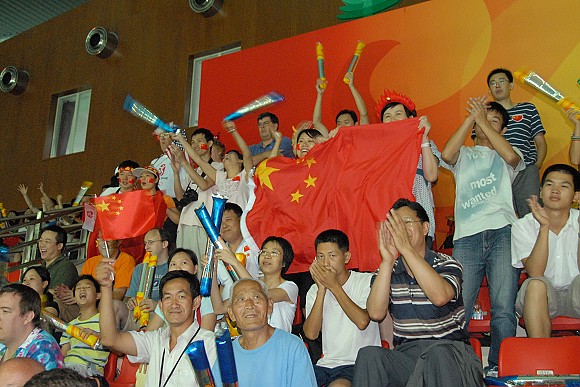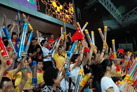 中国男排虽然实力与美国队相差较大,但每一个精彩瞬间都得到了热烈的掌声和喝彩。