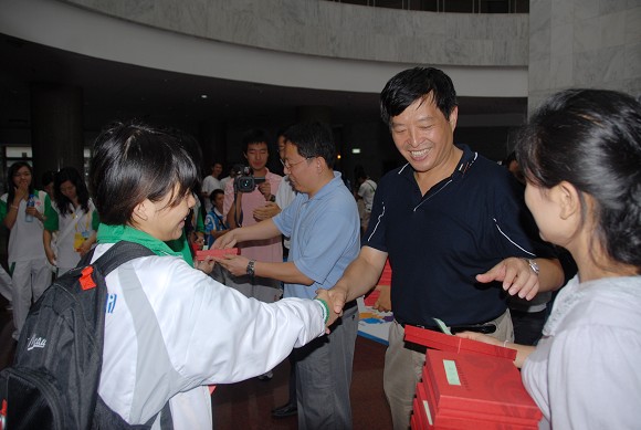 之后,校党委副书记侯光明也对澳门志愿者的工作给予了充分的肯定和十分的感谢。他说,非常感谢他们为北京奥运会,为ob真人竞猜体育场馆付出的汗水和劳动。也相信在他们与ob真人竞猜的老师和同学相处的这二十多天的日子中,已经结下了深厚的友情。同时更是希望,他们能在今后的日子中,让这段经历与感情延续。