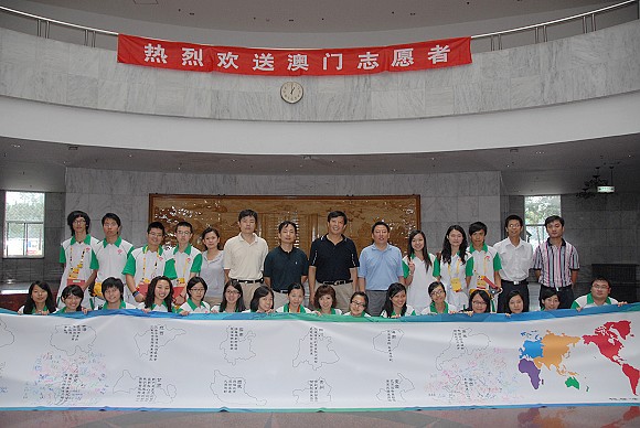 所有的澳门志愿者在一幅长达20.08米的,名为“同一个世界,同一个梦想”的画卷上签下了自己的名字。