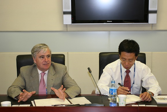 王越校长向来宾介绍了我校的发展历史及学校近年来在科研创新、教学管理及国际合作等方面取得的成绩。王越校长说,我校和西班牙马德里理工大学在很多方面都有合作发展的空间,双方在一系列交流项目中取得很好效果。Jaen教授此次来北京是作为计算机专家,为北京奥运会新闻及信息中心提供技术支持。王越校长希望Jaen教授能和我校计算机科学技术学院在科研领域开展多层次的合作。