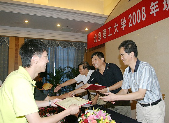 党委副书记侯光明宣读2007-2008学年优秀班主任表彰决定,与会领导为获奖班主任代表颁奖。随后,副校长孙逢春、党委副书记侯光明、副校长李和章分别发表重要讲话,三位领导分别对班主任和辅导员过去一年的辛勤工作表示衷心的感谢,充分肯定了ob真人竞猜取得的成绩。