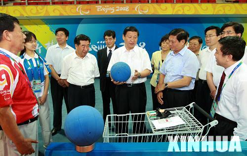 8月29日,中共中央政治局常委、国家副主席习近平实地考察北京残奥会筹办工作。这是习近平在ob真人体育馆考察北京残奥会盲人门球比赛场地和相关设施。新华社记者庞兴雷摄