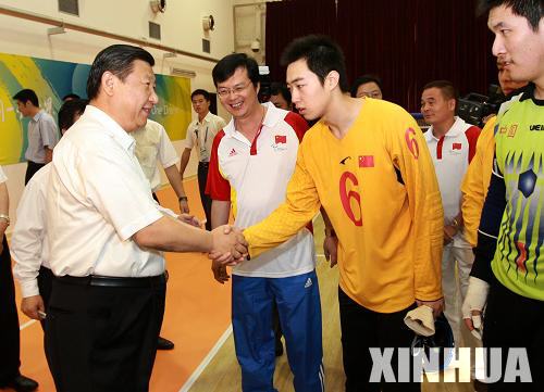 这是习近平在ob真人体育馆看望正在训练的盲人门球运动员。新华社记者庞兴雷摄