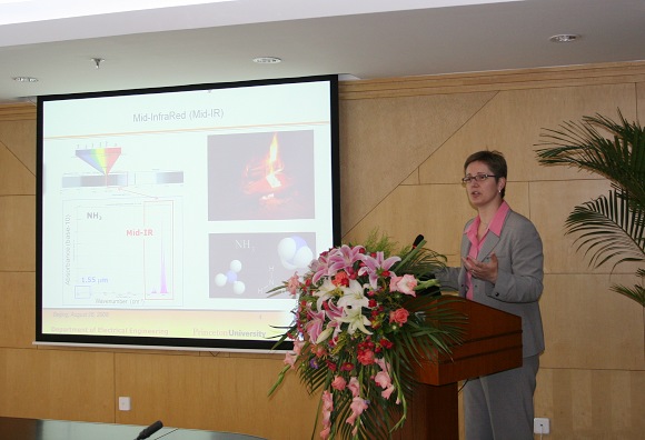 会谈后,Gmachl教授为我校信息科学技术学院师生作了题为“Quantum Cascade (QC) lasers”的学术报告。报告会上,我校学生积极参与讨论,踊跃发言,学生们富有创意的题问给Gmachl教授留下了深刻的印象。Claire F. Gmachl为普林斯顿大学电子工程系教授,同时担任美国中红外卫生和环境技术工程中心(MIRTHE)主任、奥地利科学院外籍通讯院士等学术职务,曾被评选为美国“Popular Science”杂志2004年度“十大杰出人物”。在各类学术期刊上发表了170多篇文章,在激光研究领域有很高的学术地位。