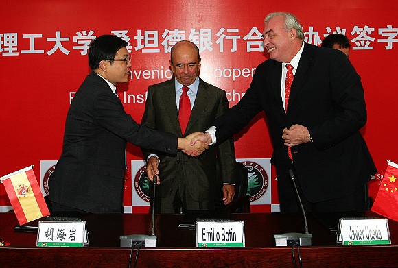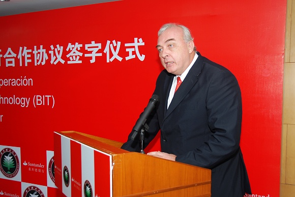 9月9日上午,西班牙第一大银行——西班牙桑坦德银行(Banco Santander, S.A.)访问我校并与我校签署了合作协议。协议的签署意味着我校正式加入西班牙桑坦德银行开展的“马克·波罗计划”,成为桑坦德银行在中国的第一批合作高校。桑坦德银行也将分三年为我校提供63万美元的奖学金,用于支持我校教师和学生与马德里理工大学及美国布朗大学的交流和西班牙语的学习。此次与西班牙桑坦德银行的合作,是我校国际化提升的一个重要契机,将有力地促进我校与欧洲及南美洲著名高校的交流。