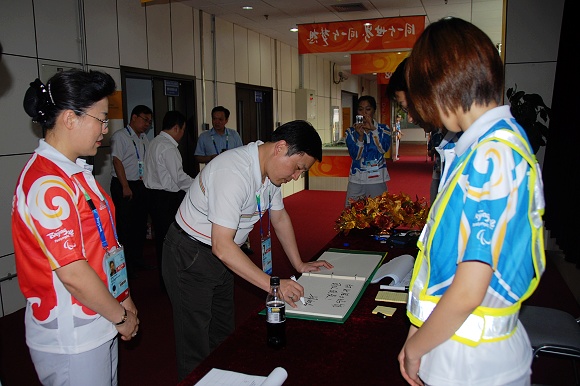 胡海岩校长还观看了中国女子盲人门球队与德国女子盲人门球队的比赛。