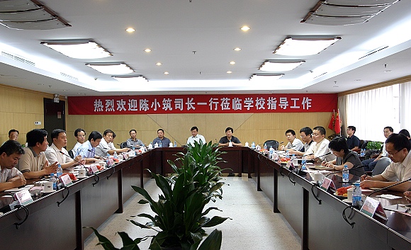 随后,陈小筑司长一行在国际教育交流中心三层会议室听取了胡海岩校长关于学校建设发展和未来规划的报告。