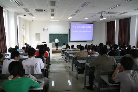2008年9月27日,生命学院按照学校关于实验室安全工作的相关精神,加强落实,继续按照我院实验室安全管理的相关措施,举办面向2008研究生的实验室准入培训。生命学院一贯重视实验室安全工作,在全校最早开展实验室准入制度,并将该制度与实验室安全工作紧密结合,并加强落实贯彻,成为我院实验室管理和安全工作良好开展的重要基础。 生命学院唐晓英副院长出席本次安全培训,培训由学院孙立权老师主讲,分团委书记、研工委书记王征老师主持。