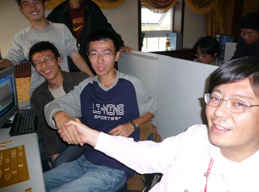 从对将棋规则的一窍不通,到编出程序参加比赛,竞赛队仅仅用了不到2个月的时间,甚至打败了日本研究多年的代表队,打破日本垄断的地位!我们在感叹这几位年轻小伙子的聪明才智和扎实计算机基础的同时,我们也了解到了他们背后所付出的艰辛的汗水!