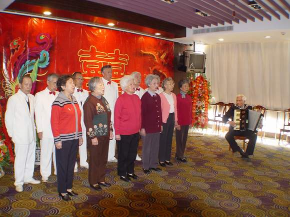 各学院的领导纷纷为各位金婚夫妇鲜花,我校的老年合唱团和校工会的杨静老师表演了精彩的节目,老干部处的厉凛松副处长也为大家献上诗朗诵,现场气氛温馨活跃。
