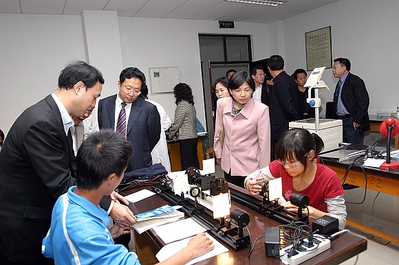 调研代表在物理教学实验中心参观了光学基础实验室和全息照相实验室。