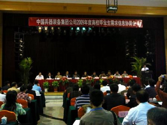 中国兵器装备集团公司2009年高校毕业生需求信息协调会于2008年10月11日在湖南省长沙市召开,我校副书记、副校长杨宾、招生就业工作处处长郝志强、招生就业工作处副处长罗佳代表学校出席了此次会议。