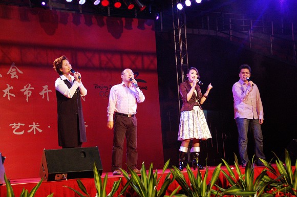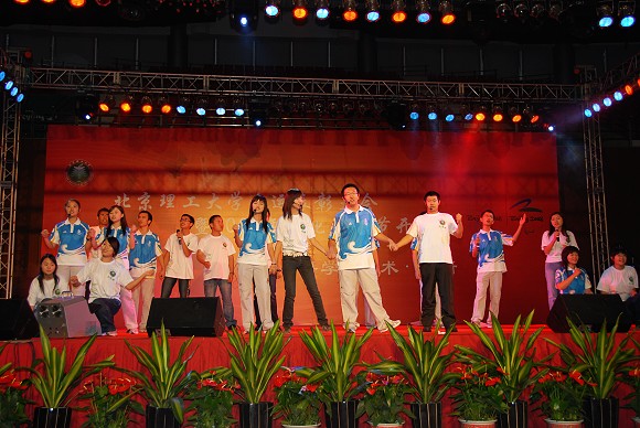 艺术节开幕式文艺表演在由我校大学生合唱团为奥运表彰排练的音乐情景剧《我是明星》中顺利落下帷幕。
