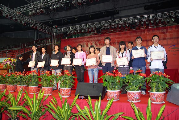 随后,到场的校领导为我校在奥运期间作出突出贡献的先进集体和先进个人代表进行颁奖。