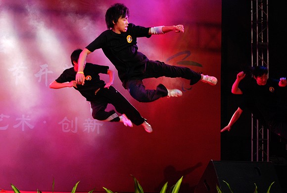 由体育部老师带领学生编排的武术表演《腾飞》,表现了中国武术的源远流长、博大精深,也展现了我校武术队的冠军风采,给观众留下深刻的印象。