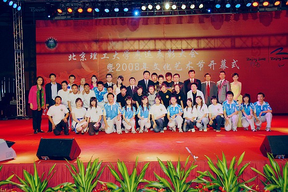 演出结束后校领导上台与演员合影留念并表示感谢。艺术节期间将陆续有丰富多彩的文化艺术活动在中关村校区与良乡校区展开。