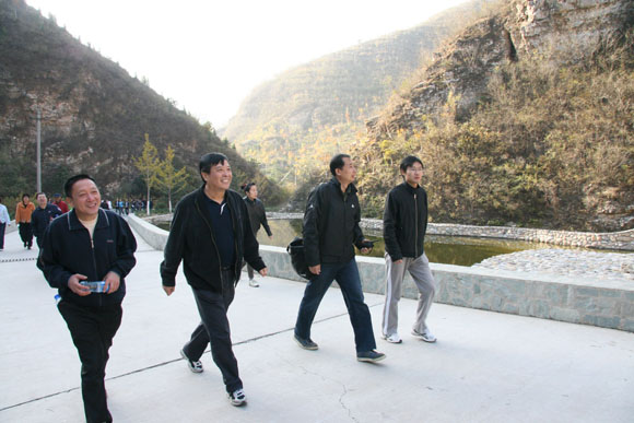 校党委副书记、工会主席侯光明(左二)健步在登山路上