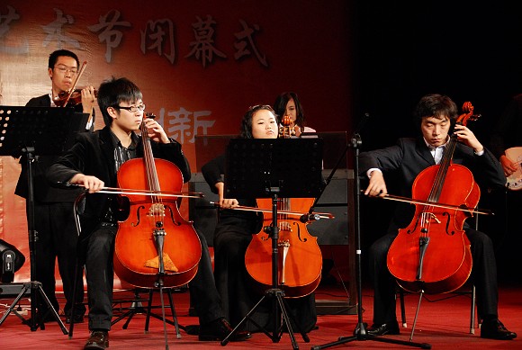 序曲过后,是由我校交响乐团和键盘乐团为大家联袂带来的由我校老师专为艺术节创作的《闭幕曲》。