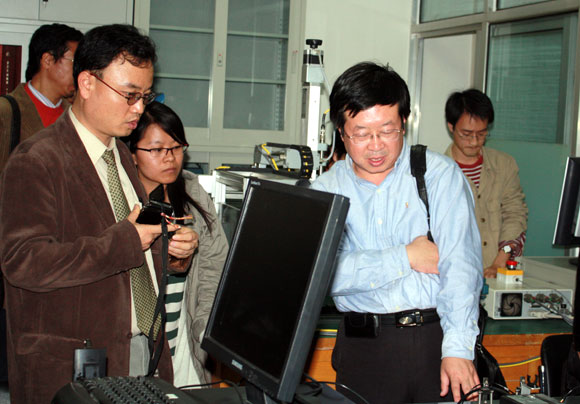 10月21日下午韩国釜山国立大学机械工程学院的赵允浩教授在我校机械与车辆工程学院会议室做了“超声导波无损检测技术”的学术报告,赵教授就超声导波无损检测技术、评估技术和理论等多个研究领域的现状和发展动态做了精彩的报告。会后赵教授在徐春广院长的陪同下参观了学院的机电控制与检测实验室。