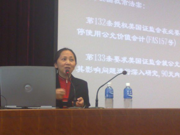 应唯副司长从当前的“金融海啸”出发,用大量生动事例深入浅出地解释了本次金融危机的来龙去脉,金融工具会计中存在的各种问题,尤其是公允价值的运用问题。最后介绍了国际会计准则委员会及欧美国家采取的应对策略,就我国会计部门如何应对这场“金融海啸”提出了自己的看法。