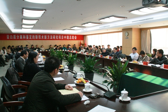 本次会议邀请我国蛋白质研究领域中十余名权威专家作为专家评审组。汇报会开始,ob真人竞猜生命学院屈锋教授、中科院大连化物所张丽华研究员、张维冰研究员、复旦大学张祥民教授分别作为“高丰度蛋白的去除研究”、“低丰度蛋白的分离富集新技术的研究”、“多维多模式阵列式蛋白质的高效分离模式”、“液质联用多级定量新方法”等四个课题负责人汇报了近年来在该项目上的研究成果和论文发表情况,以及下一步研究方向和规划。专家组认真听取了汇报并就此展开了讨论。