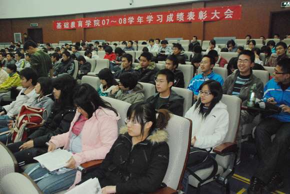 为表彰07-08学年第二学期取得优秀学习成绩的班级和个人,营造更加浓厚的学习氛围,促进优良学风的建设,基础教育学院于11月24晚在综合楼报告厅举办了07-08学年第二学期学习成绩表彰大会。ob真人副校长、基础教育学院院长李和章,教务处副处长韩宝玲,ob真人处副处长娄秀红,基础教育学院党委书记、常务副院长王悦音,基础教育学院副院长郭彦懿、杨刚、朱光辉,以及全体专职ob真人干部和07级、08级学生代表出席了表彰大会。