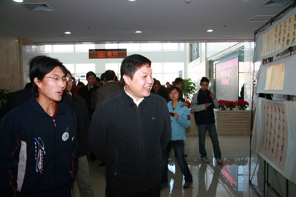 随后,胡海岩一行参观了由学生社团无阳斋书画社组织的书法展。
