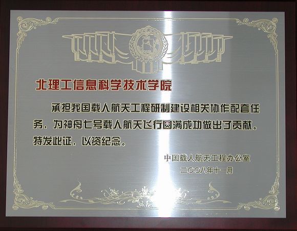 12月3日上午,中国载人航天工程办公室为我校及信息科学技术学院颁发神州七号载人航天飞行任务协作配套单位荣誉纪念牌的授牌仪式在中心教学楼1219室举行。中国载人航天工程办公室有关领导,我校赵长禄副校长、科技处史天贵副处长、信息科学技术学院仲顺安院长、薛唯书记及安建平副院长、陶然副院长、赵保军教授出席了授牌仪式。