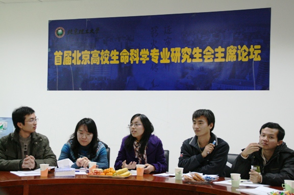 之后,与会研会主席们相互介绍了自己所在院校和本专业的研究生会的基本情况,以及研究生群体的基本情况,并围绕着研究生学术科研情况的开展特点,研究生自身发展要求和研究生会发展现状等内容展开了热烈的讨论,相互交流中,同学们加深了了解,并对不同院校的生命科学专业及研会组织的发展现状和发展思路阐明了自己的看法和观点,也提出了良好的建议。