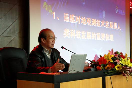 我院研究生会主席周帆同学介绍本次科技周的筹备情况以及科技周系列活动的主要内容。随后,童庆喜院士为在场老师们及同学们做了题为《对地观测与可持续发展》的科技讲座。