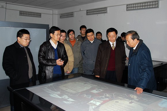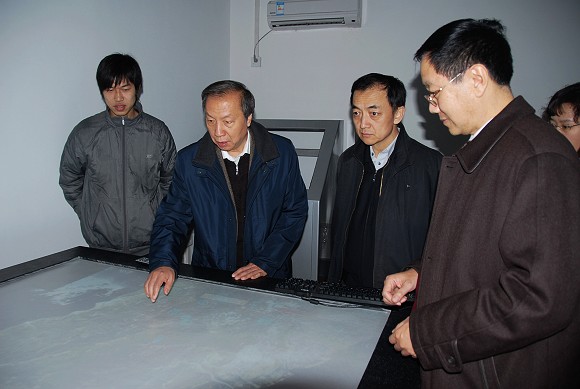 之后,赵副部长还参观了“室内大范围位置跟踪系统”和“多点触控交互台”。跟踪系统使用先进的多点触控技术,实现了多用户多触点的实时交互。对此,赵副部长表现出了很大兴趣,并提出了一些应用建议。